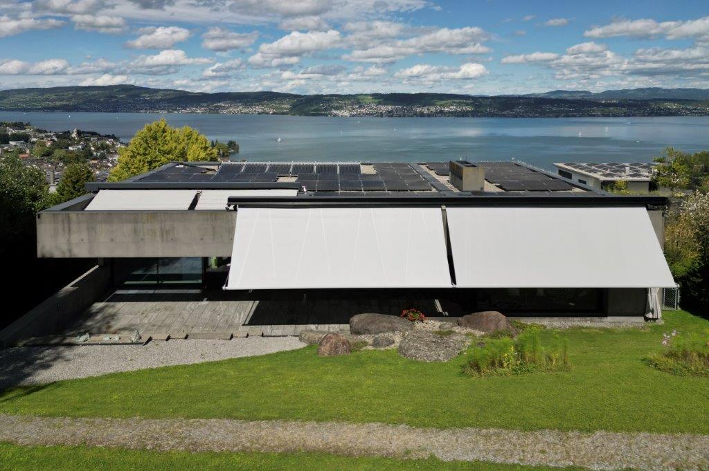 2 verschiedenartige Sonnensegel an Wohnhaus am Zürichsee ZH